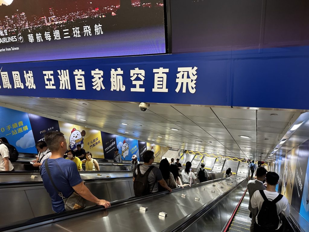 台湾のエスカレーターは左側開け、右側に立つ。