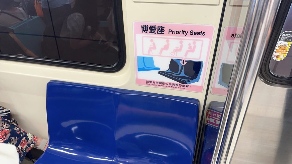 台湾地下鉄のPriority Seats(優先席)は「博愛座」と表記されていました。