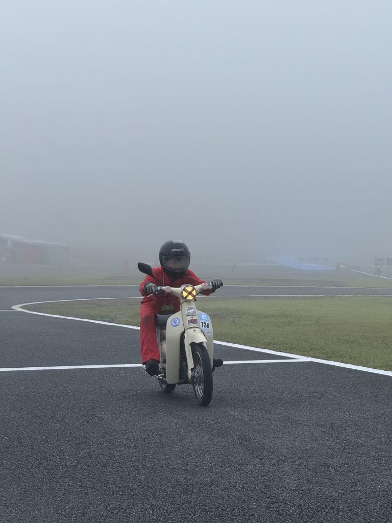 周回途中にチェーントラブルにより停止するも、ドライバーが修理しレース再開