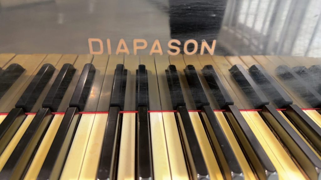今回のピアノは、1960年代に製作された Diapason(“音域・音叉”を意味)というメーカーのもので、総一本張り式の弦やアグラフなど、理想を追求した設計が施された一台です。中立的で美しい音色が特徴とされています。
