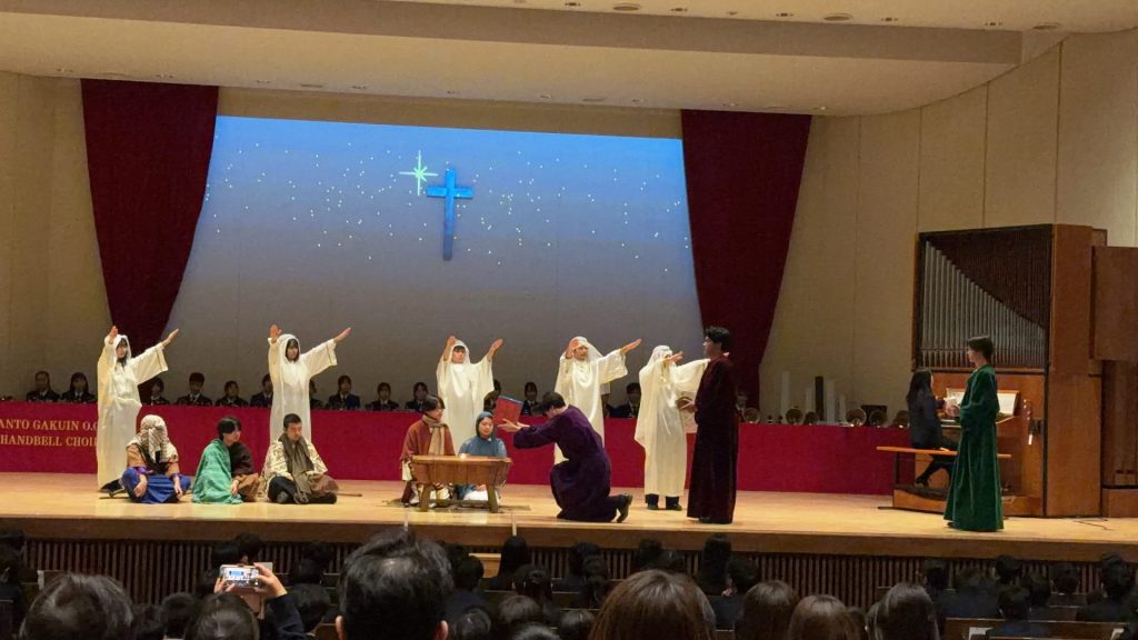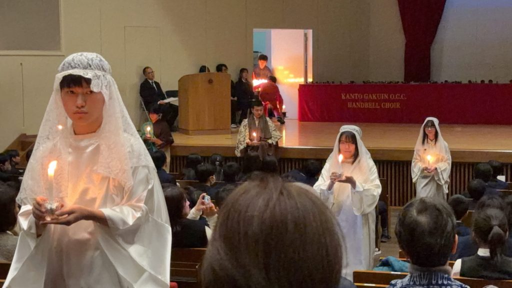 中学1年生は「キャンドルライトサービス」となり、高校生によるクリスマス・ページェントが上演されました。