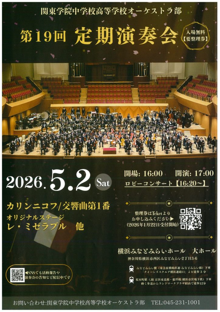 三つの音楽系部活動が、それぞれ定期演奏会を開催します。
