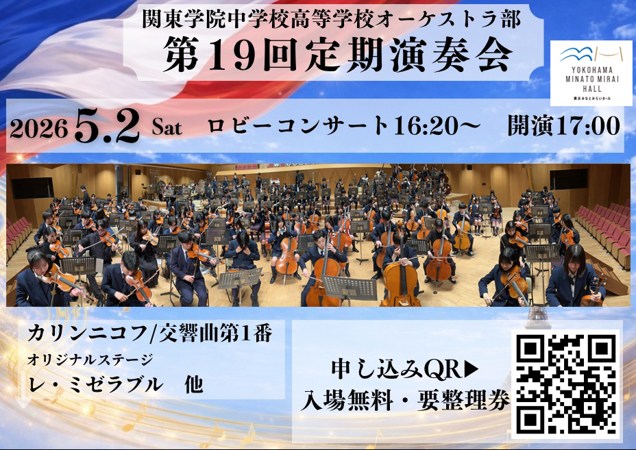 2026年5月2日(土)に、関東学院中学校高等学校オーケストラ部の第19回定期演奏会を開催します。